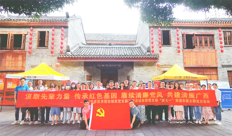 為緬懷革命先烈,傳承紅色基因,賡續紅色血脈,在七一建黨節到來之際,廣西榮港城發展集團有限公司黨支部與南寧市區農信社城西黨支部以“我們的節日——建黨節”為契機,一同來到鄧穎超紀念館開展以“汲取先輩力量、傳承紅色基因、賡續清廉黨風、共建清廉廣西”為主題的黨建聯建黨日活動。